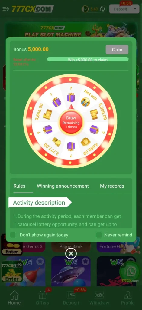 Every user has great potential to earn money in the game. The platform is well-known for its greater rewards and incentives in the marketplace. Start making money on your Android device while playing games by downloading the 777cx game app.